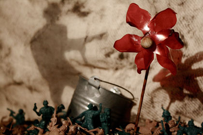 The action is interspersed with songs, which are charismatically performed and invested with wit and charm by Russell Beale, but they’re essentially there to let Terri don yet another astonishing frock; very often they break up the narrative flow rather than moving things forward. While the standard of playing is decent enough, apart from SRB the only performance that really makes an impression is that of Angus Wright as the zealous and ever so gung-ho, Major Flack, who happily packs the men off to the jungle where danger awaits. He’s got a rich, sonorous voice of which Grandage makes full use, but when these two are off stage the pacing tends to dip and the production feels every minute of its near three hour running time. The first half in particular seems to take an age to play out.